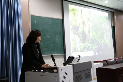 植物科学系张开梅博士作了题为“蕨类植物配子体发育及化感作用研究”的精彩报告。张博士针对蕨类植物配子体的发育和外来入侵植物对其化感作用进行了细致剖析,首先,以蕨类植物金毛狗、傅氏凤尾蕨、剑叶凤尾蕨等配子体发育为案例,阐释了蕨类植物的系统发育及其孢子的保存;然后结合紫茎泽兰对蕨类植物孢子萌发及配子体发育化感作用和三叶鬼针草根系分泌物对蕨类植物配子体化感作用的研究,证实入侵植物对蕨类植物的生长发育具有抑制作用。报告内容论点准确精炼,论证充分有力,案例翔实生动,现场互动热烈,引起师生浓厚兴趣。