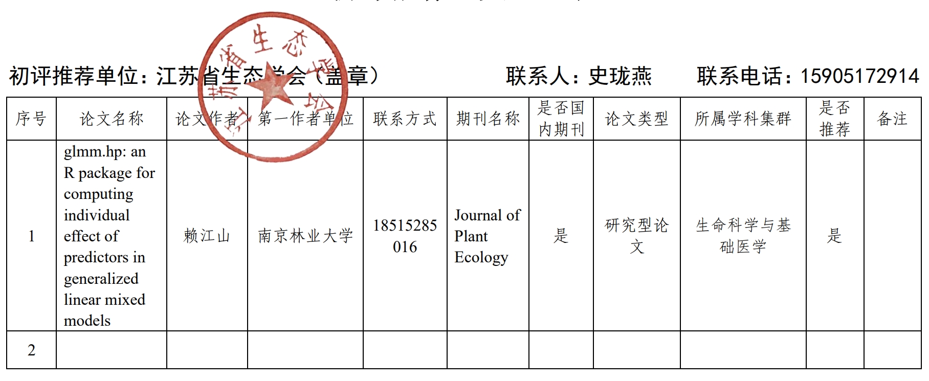 根据省科协《关于开展2025年江苏省自然科学百篇优秀学术成果论文推选工作的通知》(苏科协发〔2025〕28号)有关要求,江苏省生态学会在会员范围转发了该文件,经会员自愿申报、所在单位批准、学会进行资格审查、专家评审后,现公示2025年江苏省自然科学百篇优秀学术成果拟推选论文。公示日期从2025年5月9日至5月13日止。公示期内,任何单位或个人对上述拟推选论文持有异议的,应当以书面方式向我单位提出,并提供必要的证明文件,逾期视为同意本公示内容。