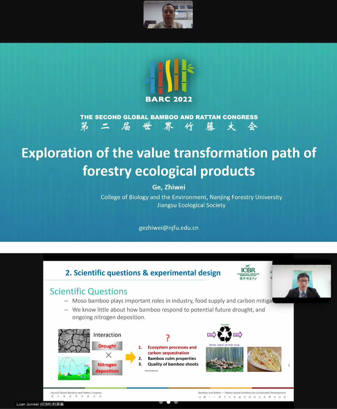 11月8日上午,由南京林业大学和江苏省生态学会联合主办的“生态系统服务和价值核算”线上平行会议顺利召开。各位专题报告专家围绕主题,针对农林业相关生态系统服务功能的评估方法和标准展开了讨论,展示了生态产品价值的核算方法与指标的应用研究成果,分析了生态产品价值化工作推进的科学路径,为提升碳中和背景下的生态保护与生态文明建设推进建言献策。会上,江苏省生态学会秘书长葛之葳做了题为“森林生态产品价值转化途径探索”的专题报告,介绍了江苏省森林生态产品价值转化过程中探索性的工作方向,向参会代表展示了我省双碳背景下生态产品开发与利用的推进历程和阶段性成果。来自世界各地的100多名参会代表针对专家报告内容展开了广泛而深刻的线上交流。